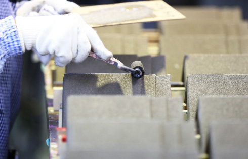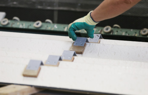 - 私は出隅の検査と塗装をしてます。十数本重ねられた出隅を運ぶときは少し重たいですが、それでも10kgくらい。入社してから程よく筋肉が付いて、健康的になりました(笑)