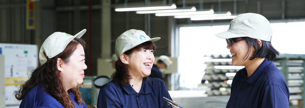 ニチハボード加工の製造現場では、たくさんの女性が正社員として働いています。年代も、働く工場も違う3人の女性社員が、この会社で働くやりがいや職場の雰囲気について語ります!