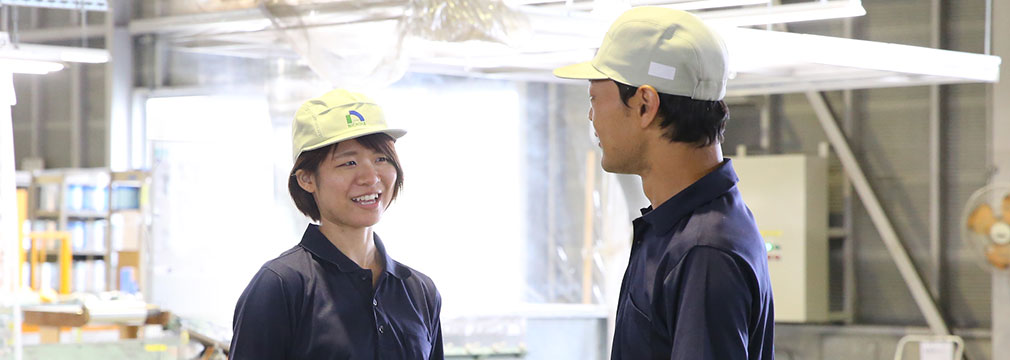 - 先輩たちにわからないことも聞きやすいし、自分たちも「違う」と思ったら、「違うんじゃないですか?」って言いやすい。「新人が何を生意気言っているんだ」という感じは全然なくて、入社1年未満の社員の意見にもしっかり耳を傾けてくれる。前の会社は過去の経験を優先して絶対こう!という感じだったけど、ウチは「自分たちでどんどん改善して、ラクをしなさい」という考えだから、いつも工場長やリーダー、いろんな人に相談して助けてもらってます。